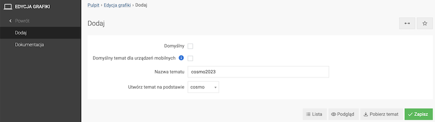 W panelu administracyjnym przejdź do Grafika → Edycja grafiki → [nazwa_tematu] → Konfiguracja grafiki.