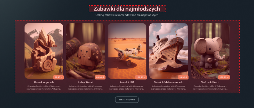 Możesz w tym miejscu zarządzać przypisanymi produktami do grupy, ich ilością i tytułem grupy. Na stronie głównej jest możliwość dodania grup produktów o typach strona główna, polecane, nowości. Powyższa grupa jest to grupa o typie polecane.