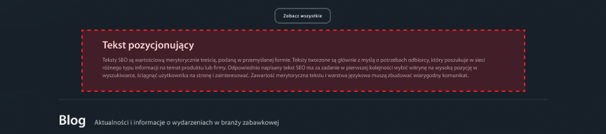 Możesz w tym miejscu dodać wpisy bloga oraz skonfigurować działanie i wyświetlanie sekcji.