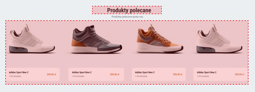 Możesz w tym miejscu zarządzać przypisanymi produktami do grupy, ich ilością i tytułem grupy. Na stronie głównej jest możliwość dodania grup produktów o typach strona główna, polecane, nowości. Powyższa grupa jest to grupa o typie polecane.