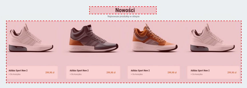 Możesz w tym miejscu zarządzać przypisanymi produktami do grupy, ich ilością i tytułem grupy. Na stronie głównej jest możliwość dodania grup produktów o typach strona główna, polecane, nowości. Powyższa grupa jest to grupa o typie nowosci.