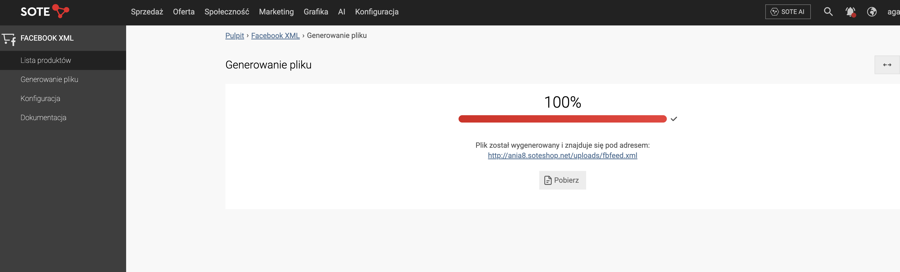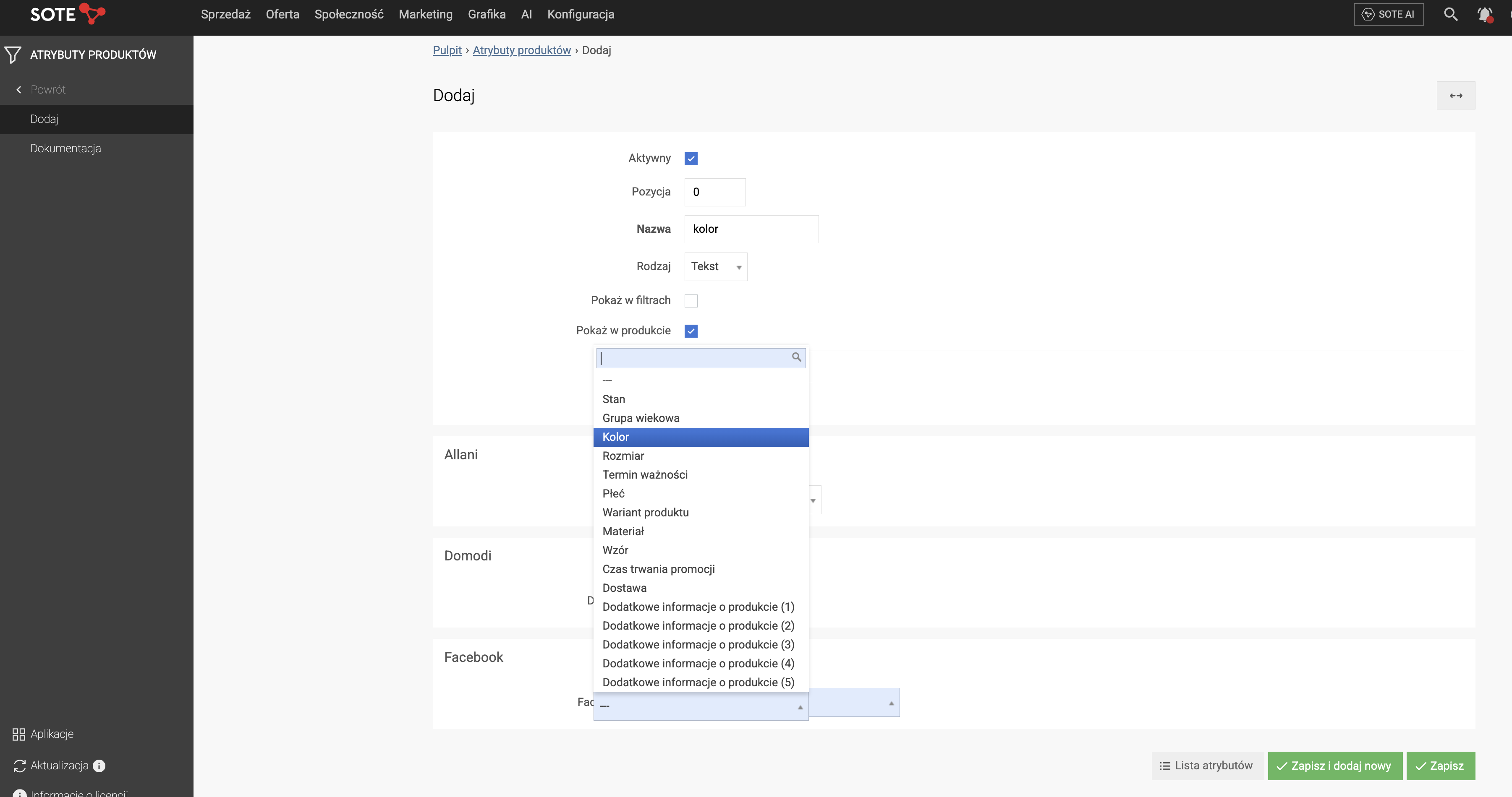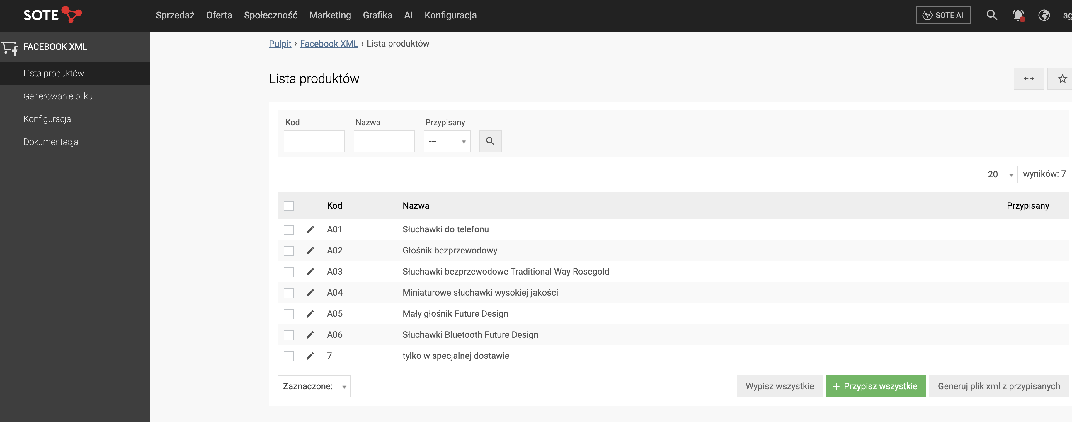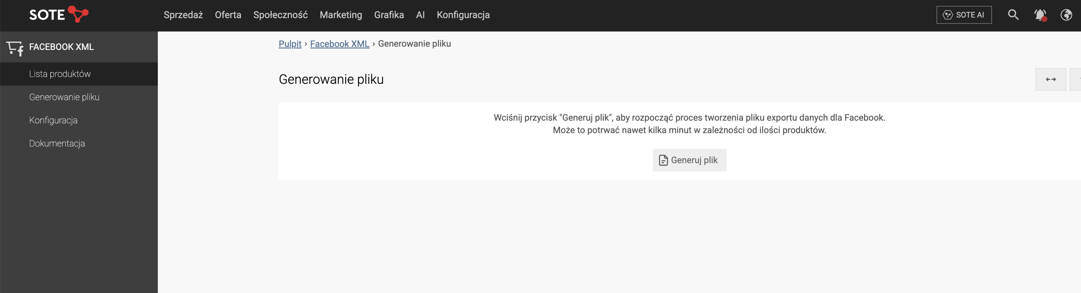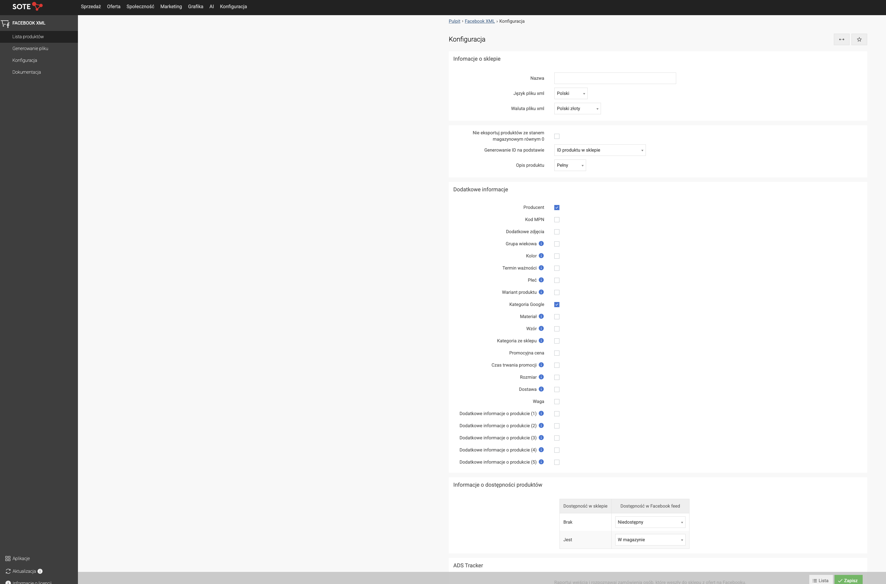 Konfiguracja oferty dla katalogu produktów Facebook w SOTESHOP